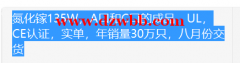 采购氮化镓135w,A口和C口的成品,UL,CE认证,实单,年销量30万只,八月份交货。有意的厂家请联系