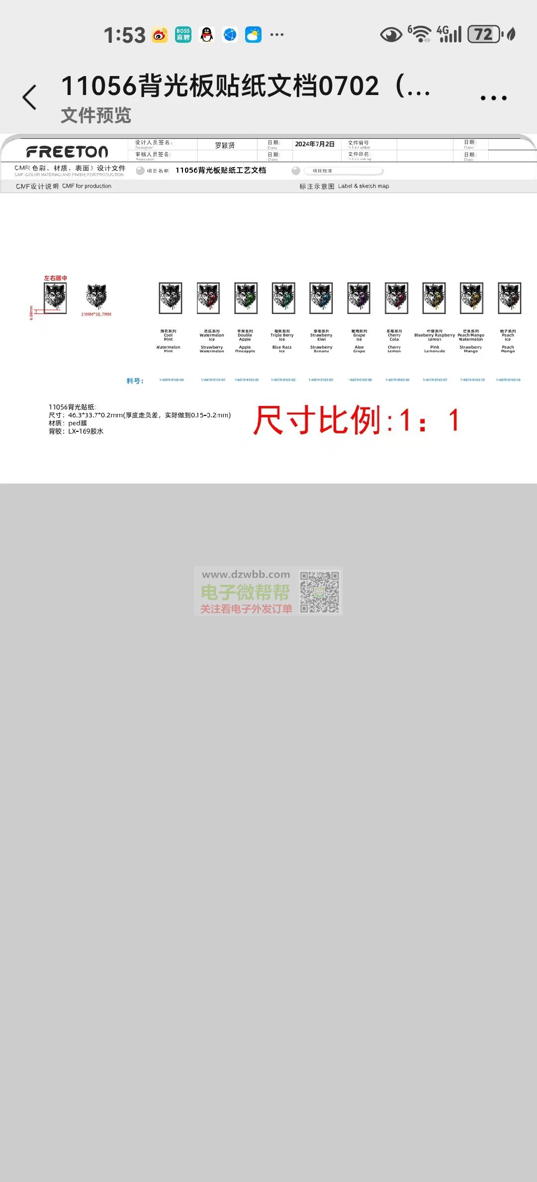 尺寸:46.3*33.7“0.2mI(厚度走负差,实际做到0.15-0.2mm)材质:ped膜
