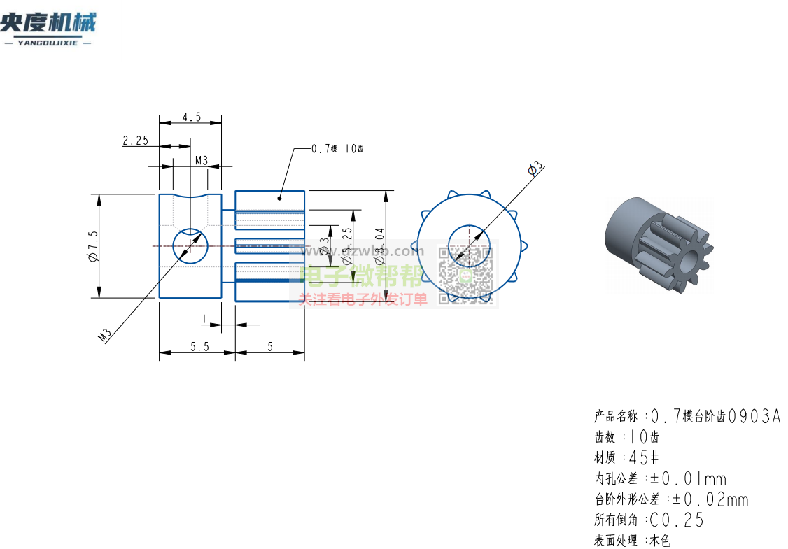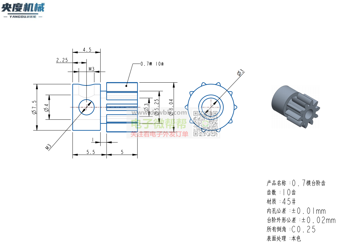 能加工小齿轮的厂家速来对接!3款每款各50000个 ,如图所示