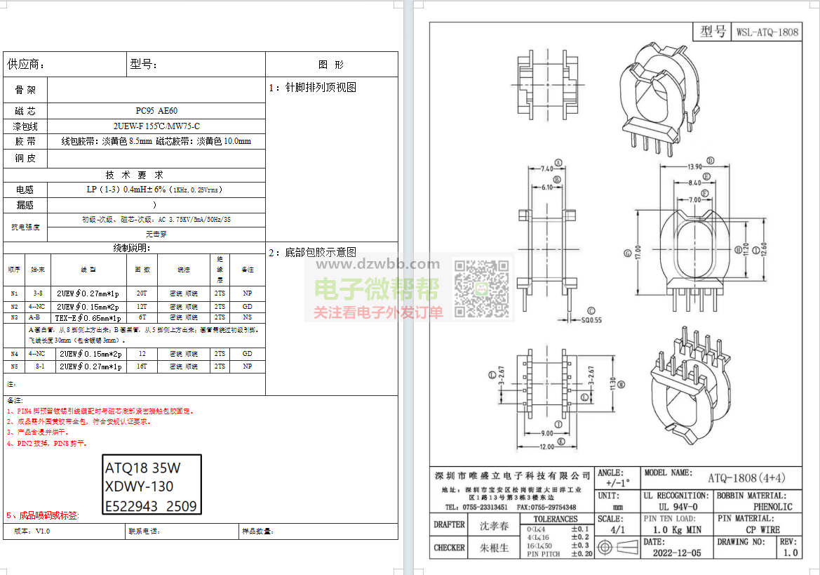 求购ATQ18和ATQ2306变压器,每款各15000个!