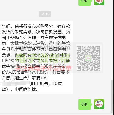 女款发饰厂商速来对接,大批量多款式进货!秋冬新款发圈、肠圈和圣诞系列发饰,客户做发饰电商,选中的每款拿货几十和几百件不等,出口越南。要求:供应商有跟外贸公司合作和出口经验的,可以收美金且能报关,请优先按顺序报含报关FOB离岸美金价/人民币含税价/未税价,符合要求并感兴趣生产厂家请+V:(非手机号,10位数),中间商勿扰。