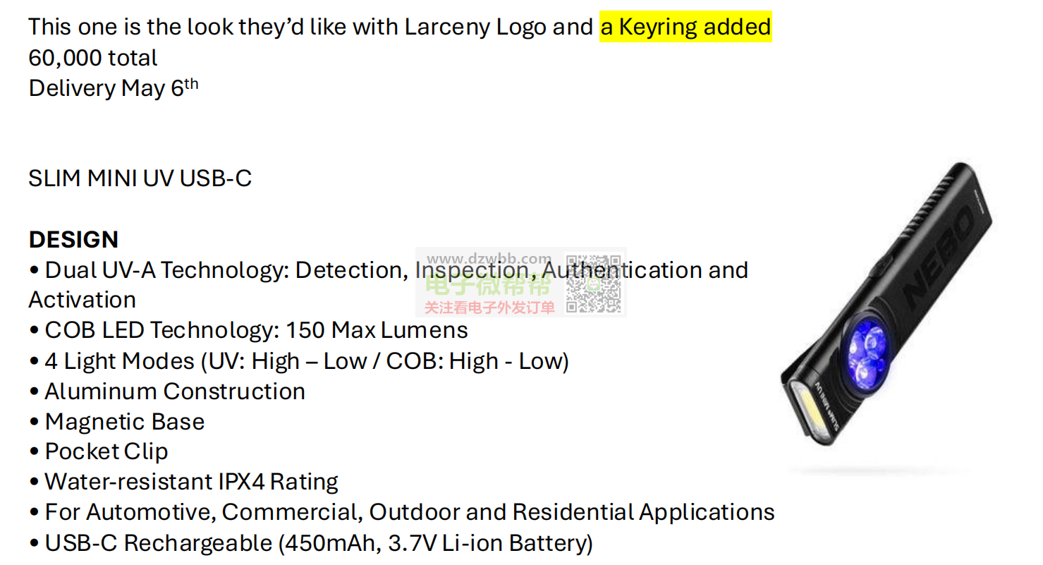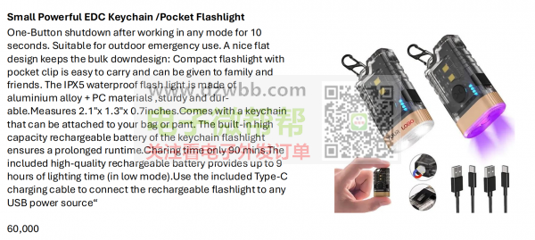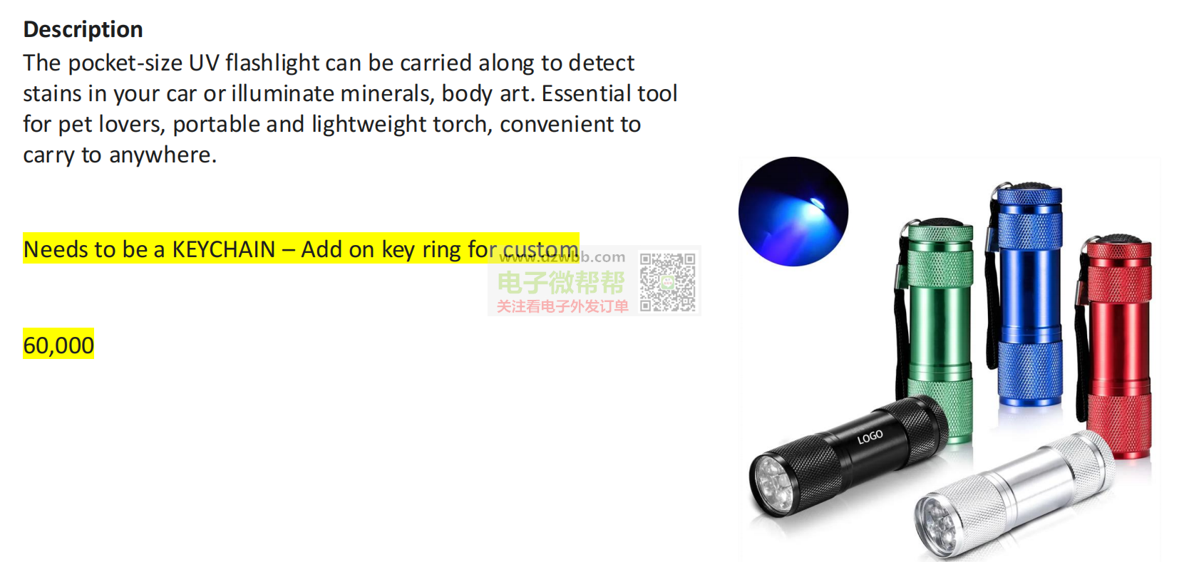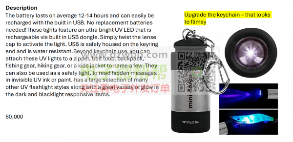 数量每款60000个,迷你紫外线黑光钥匙扣!