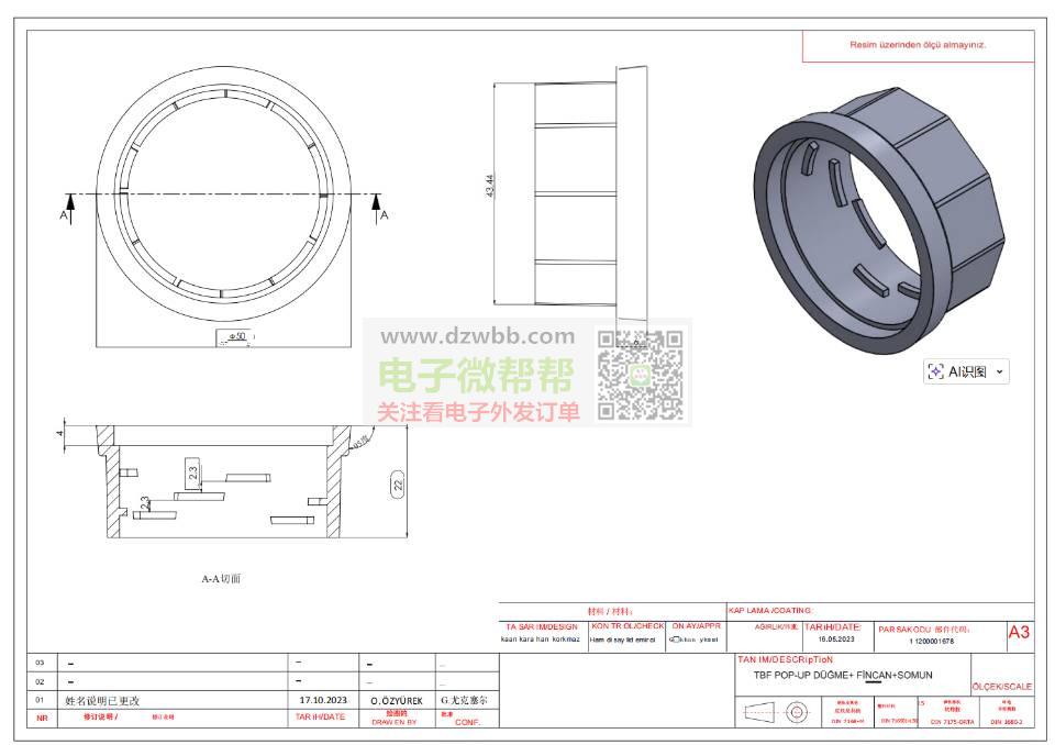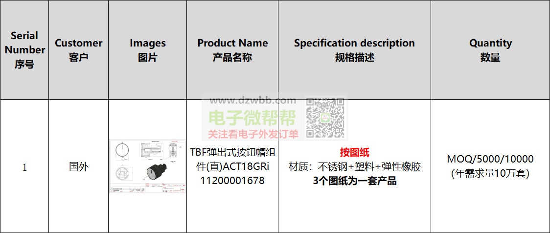 TBF弹出式按钮帽组件厂家请联系,出口土耳其!按图纸,材质:不锈钢+塑料+弹性橡胶(3个图纸为一套产品),数量:MOQ/5000/10000,要求:供应商有跟外贸公司合作和出口经验的,可以收美金且能报关,请优先按顺序报含报关FOB离岸美金价/人民币含税价,符合要求生产厂家的请+V:(非手机号,10位数),中间商勿扰