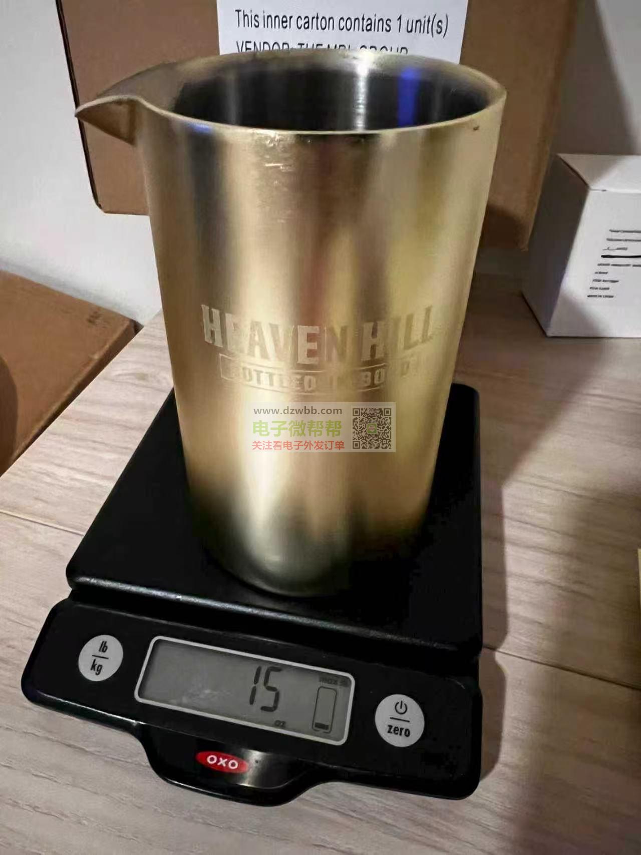 尺寸:D97*H155内砂外镀金 一处logo激光,厂家请联系