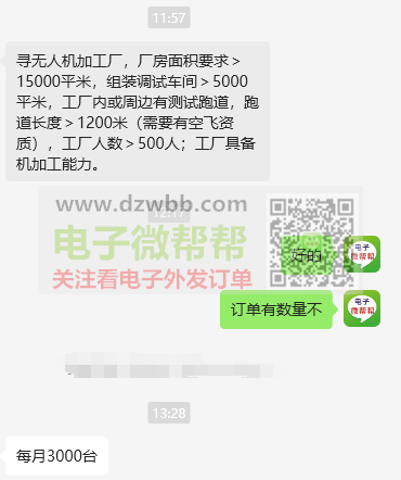 厂房面积要求>15000平米,组装调试车间>5000平米,工厂内或周边有测试跑道,跑道长度>1200米(需要有空飞资质),工厂人数>500人;工厂具备机加工能力。