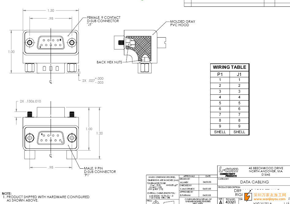 如图DB9M/DB9F转接头的货实单外发