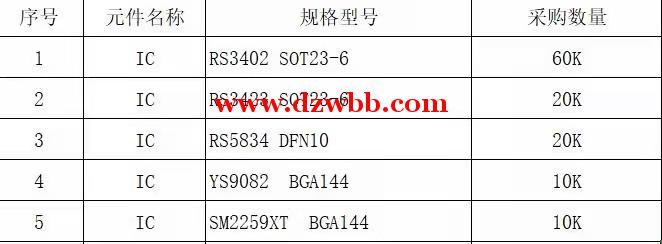 急需下列元器件