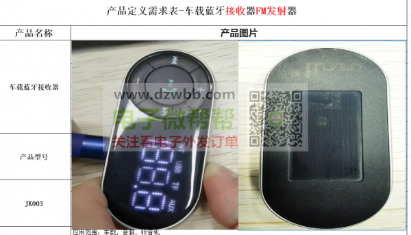 寻找车载蓝牙接收器FM发射器,月需10K,长期要货,不开模,不要求一模一样