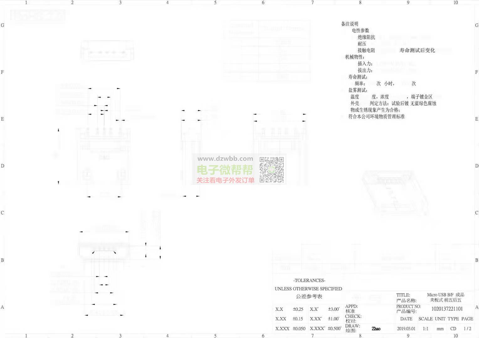产品名称 夹板式 USB 2.0 Micro 5p M 求购USB连接器 请联系我