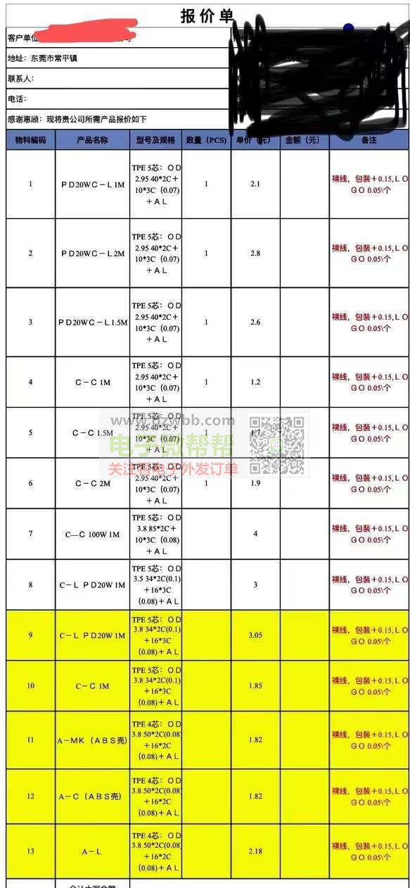 求购如图数据线,QTY:6000条!