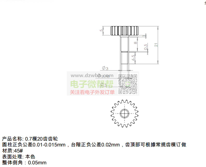 采购:如图 0.7模20齿齿轮,5W