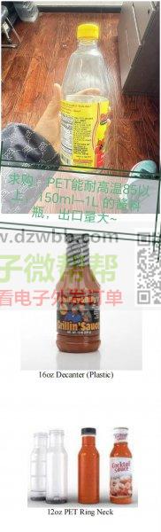 采购:酱料瓶,出口量大,能耐高温85以150m-1L的,
