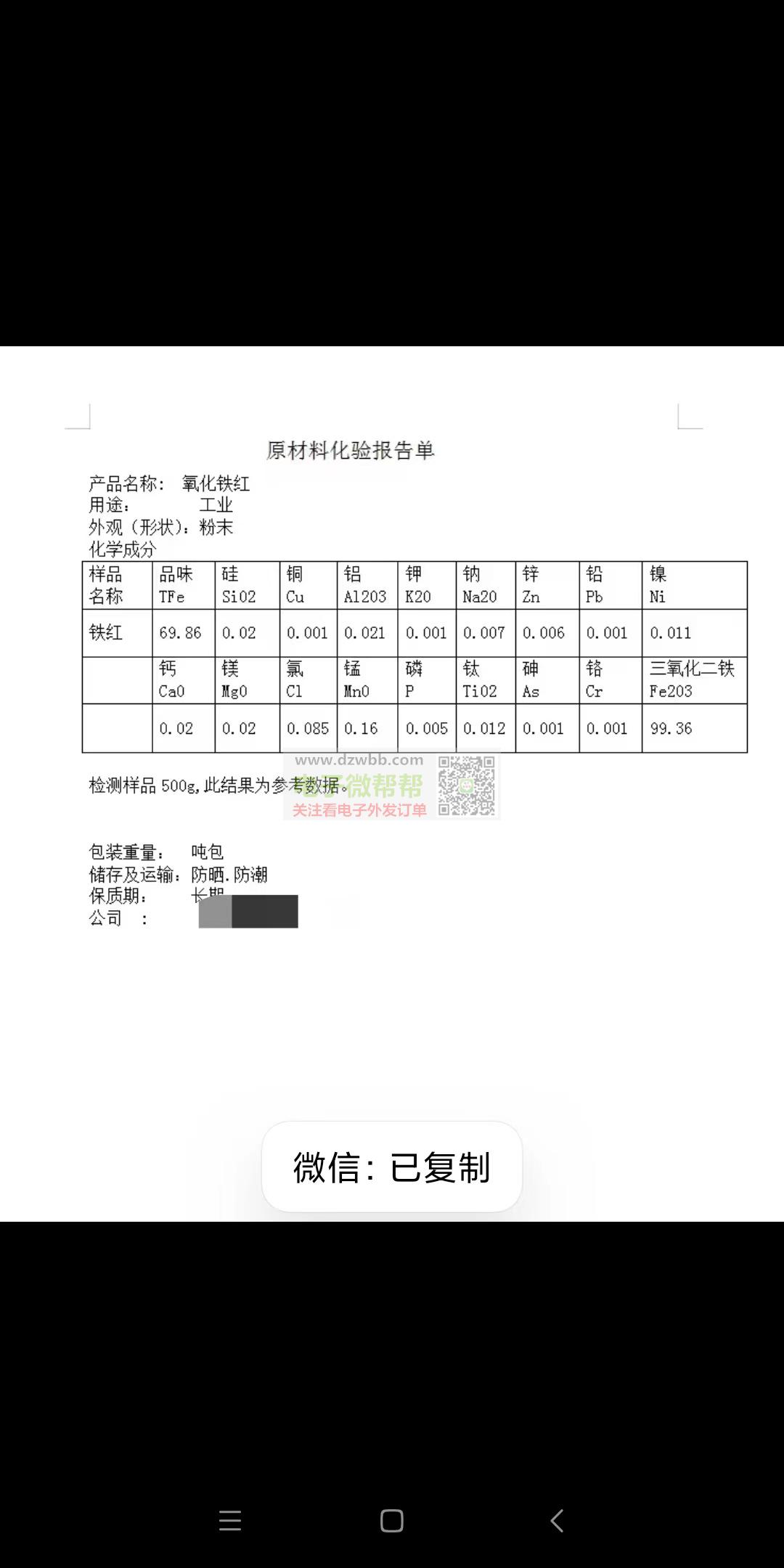 韩国浦项电子级三氧化二铁,要求: