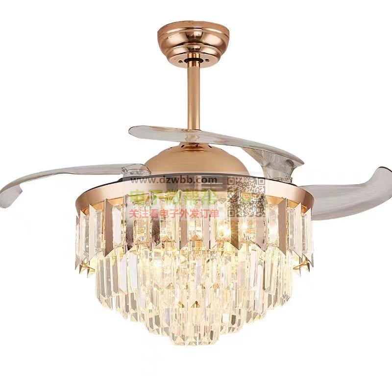 急需如图风扇灯100台!尺寸:42寸,光源与功率:LED三色96W,电机:纯铜+变频,控制器:6档遥控,材质:五金底盘+水晶+ABS